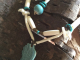 Artisan made hand casted ceramic angel wing. Bird wing necklace. Turquoise and bone jewelry set.