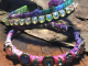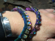 Beautiful silk, swarovski cup chain and brass bangle bracelets. The one with the crystals is more of a cuff so it can be gently formed to your wrist for a slightly tighter fit and provide for that awesome layered look.