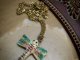 A beautiful 1x1 inch double sided dragonfly with cute little details in burgundy and teal. The vintage brass chain with a lobster claw clasp is about 18 inches.