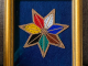 A sparkling golden seven point star with all Cherokee clans represented by their colors in the order they would sit at some ceremonial grounds. It is the artist's hope that this piece may touch some in a way to excite them, or at the very least spark interest in learning more about their culture. We have so few Cherokee grounds remaining. Let us all go and keep the fires burning.