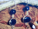 These earrings are about 2 inches in length from the top of the ear wires to the bottom of the dangle. The fish hook ear wires were torched and hand forged by me and all silver is sterling.