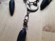 Mixed metal, carved stone and magnesite teeth lanyard necklace and earring set