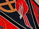 Materials: Red wool stroud, silk, cotton, velvet ribbon, 100% wool yarn. Size 10 and 11 Czech seed beads, size 13 charlotte cut Czech seed beads, pre-1900 seed beads and pure copper beads.