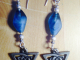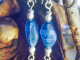 silver and blue antique german glass celtic knot triskele dangle earrings