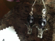 Silver gargoyle and onyx skull bead dangle earrings on spiral silver filled ear wires